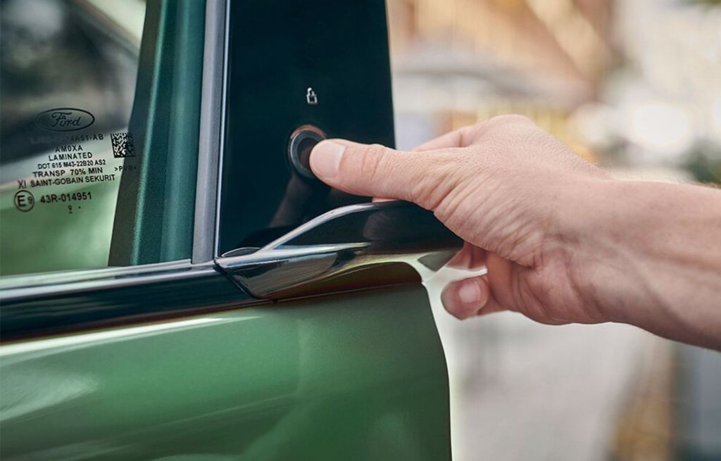 Egyszerűsített dizájn. Felejtse el a kilincseket! Ahogy járművéhez közeledik, a Mustang Mach-E felismeri a kulcsot és megvilágítja az ajtó gombját, amit Önnek csak meg kell érintenie az ajtó kinyitásához.